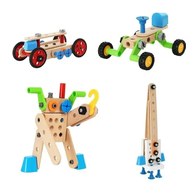 木製パーツの質感がよく、とても丈夫です。息子も楽しそうに遊んでいますが、説明書の内容が少しシンプルすぎると感じました。もう少しバリエーションがあると嬉しいです。